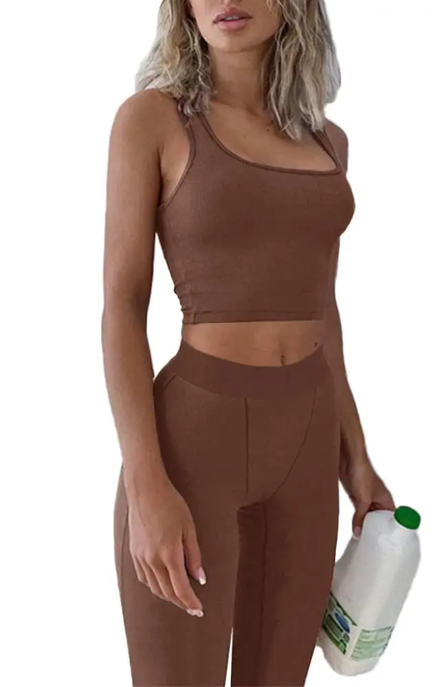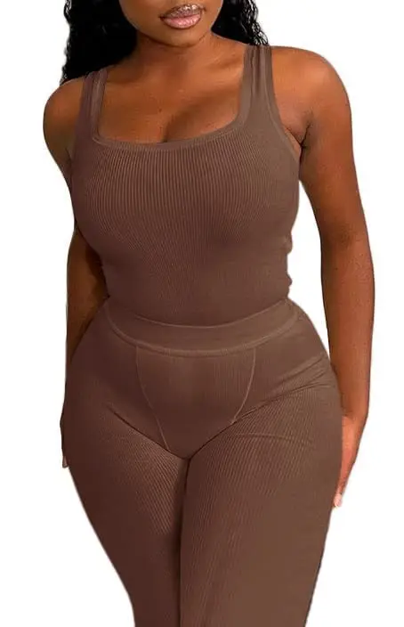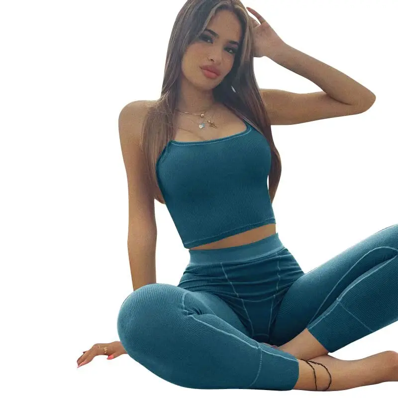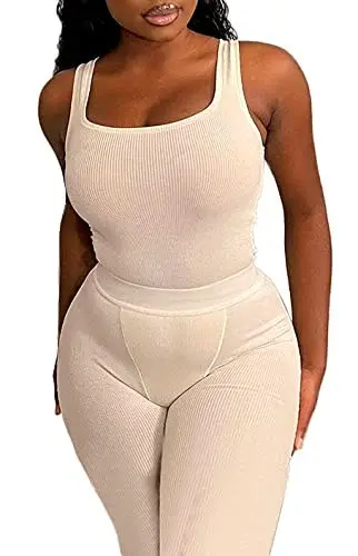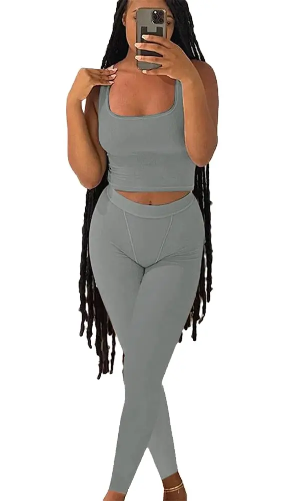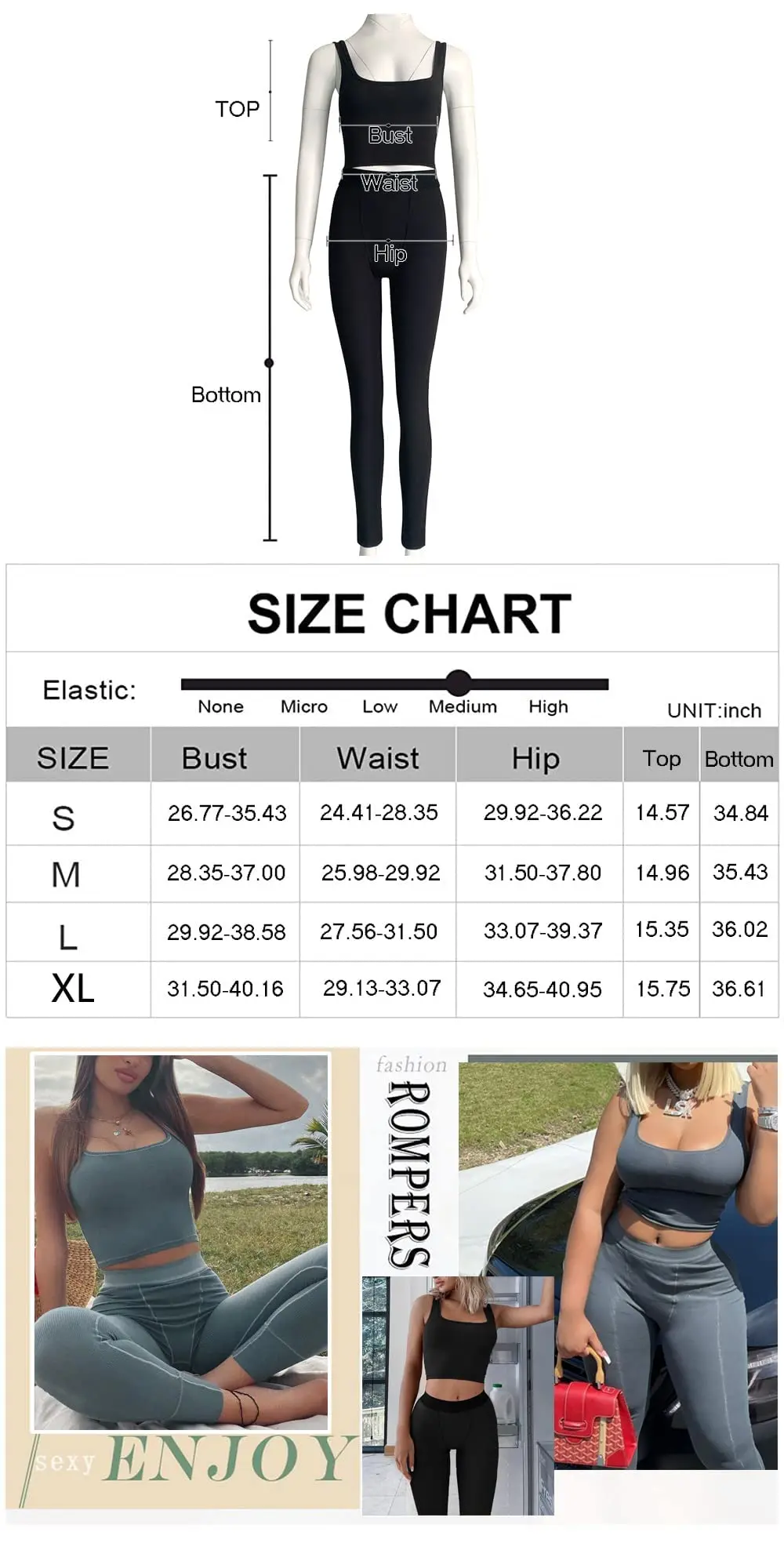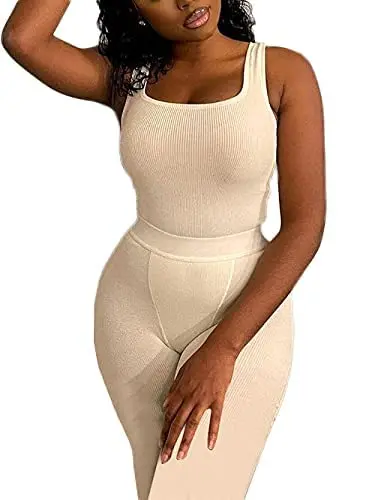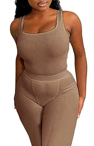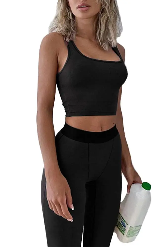 Casual Workout Sets 2 Piece Outfits For Women Ribbed Crop Tank Top High Waist Yoga Leggings Lounge Wear Tracksuit Price range: $ 19 through $ 23