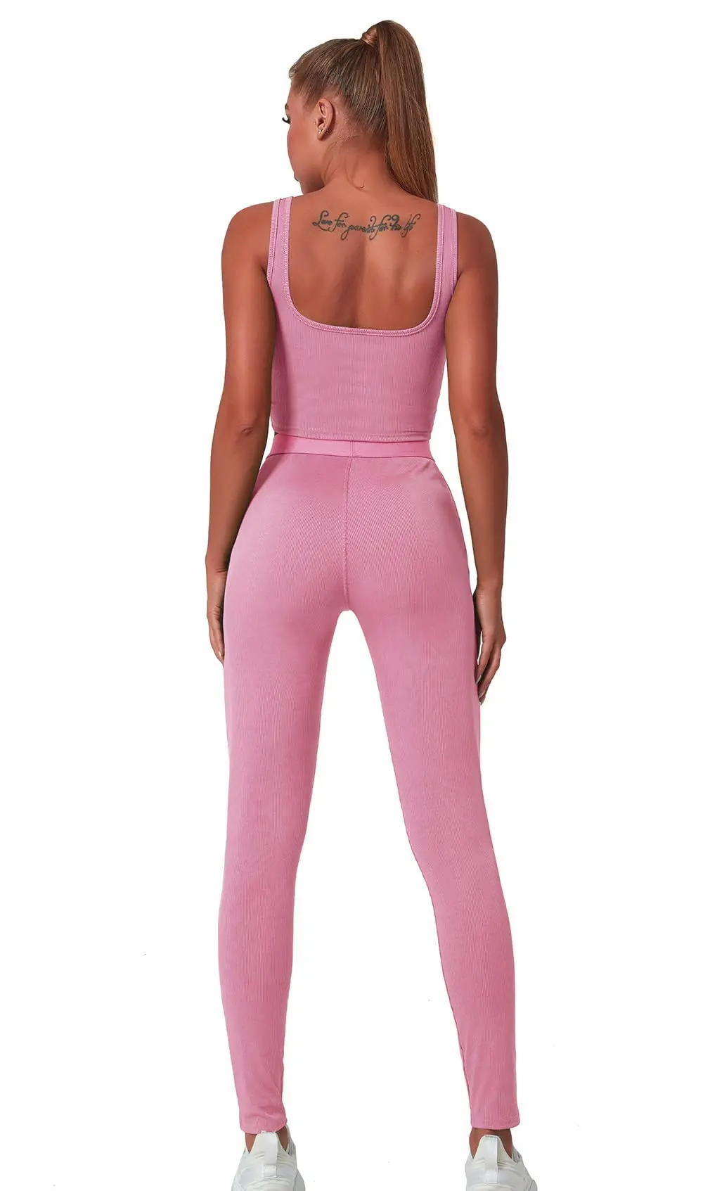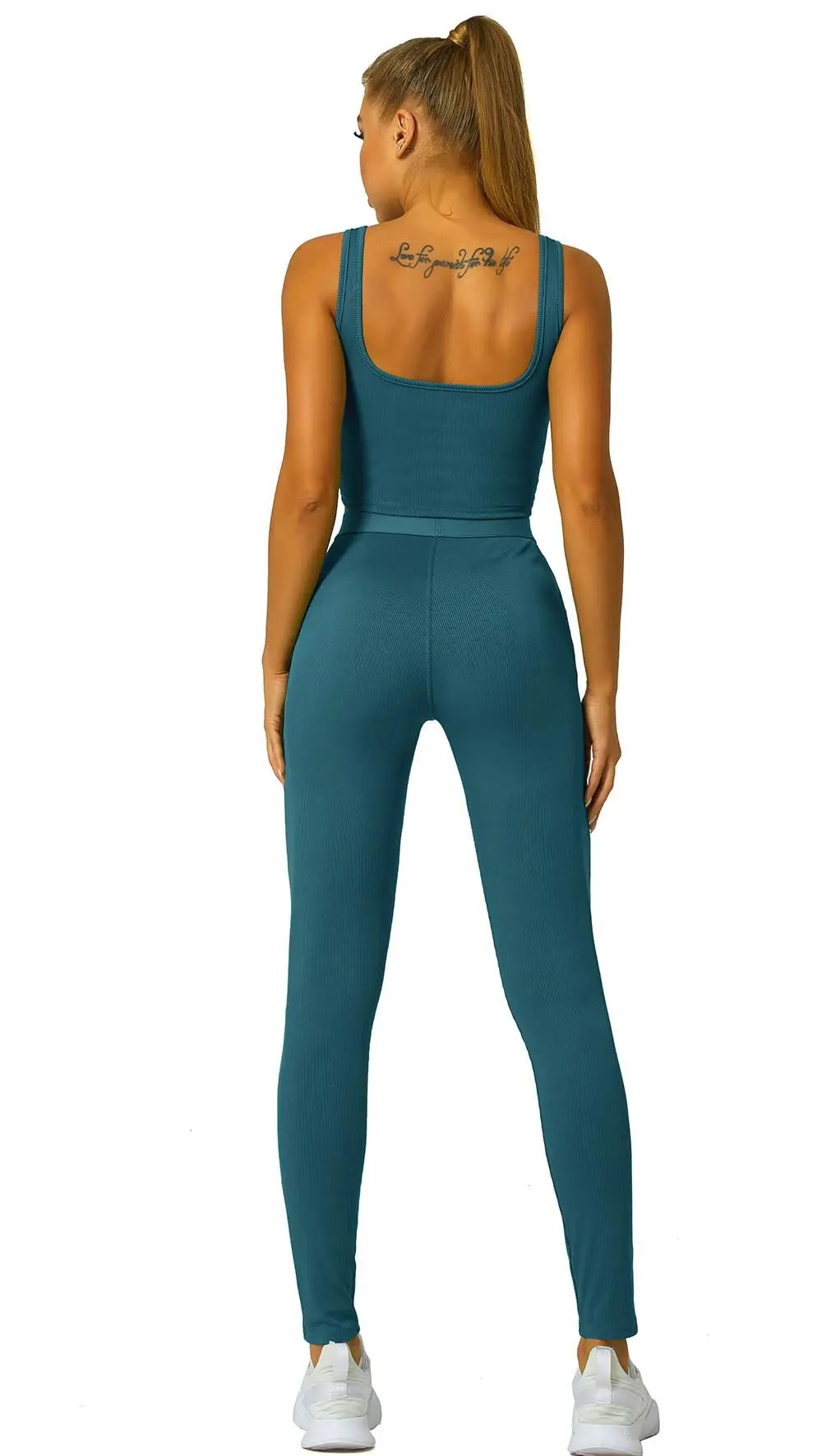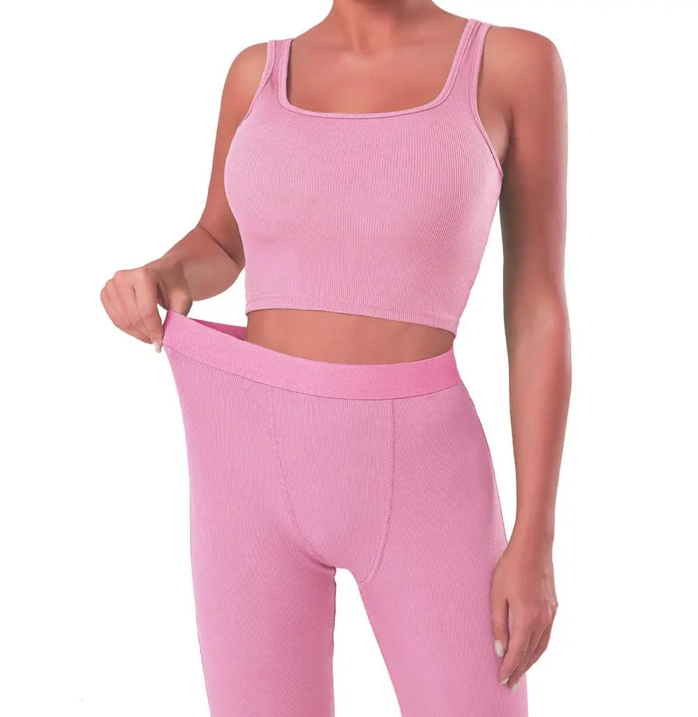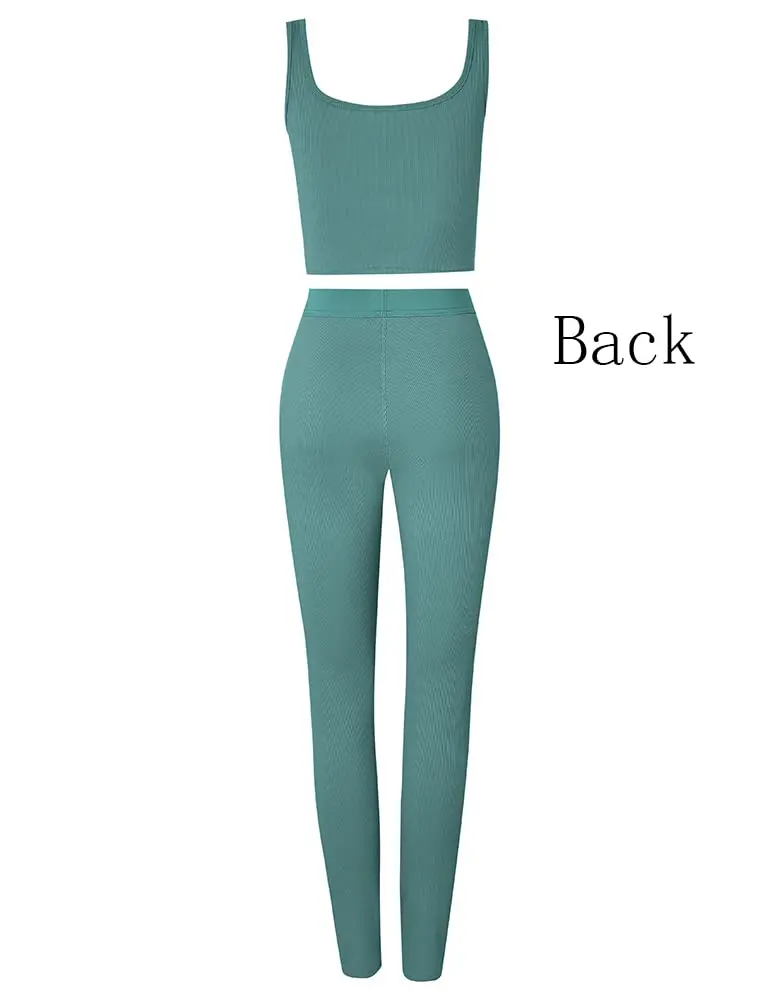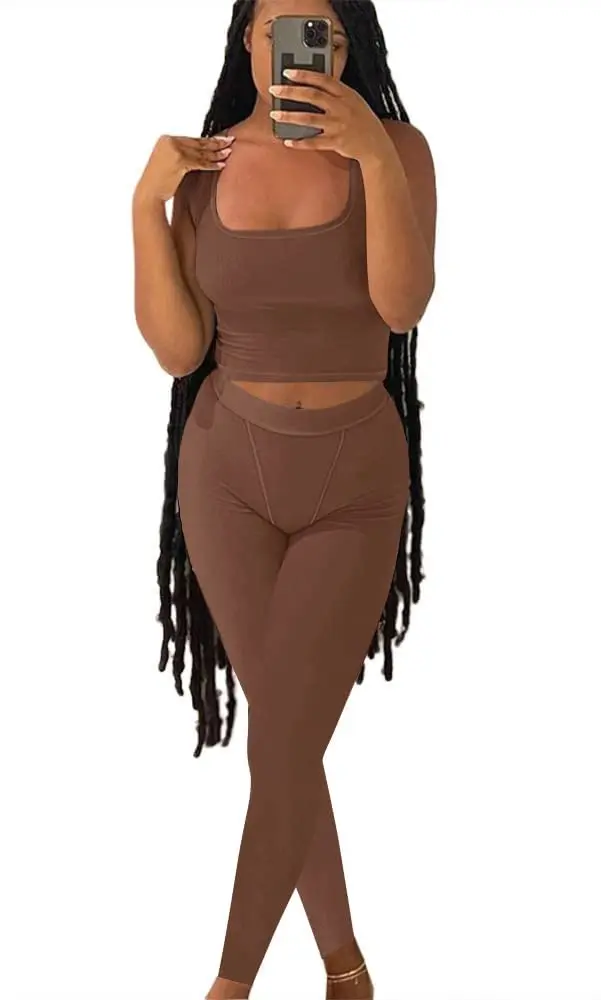 Casual Workout Sets 2 Piece Outfits For Women Ribbed Crop Tank Top High Waist Yoga Leggings Lounge Wear Tracksuit Price range: $ 19 through $ 23