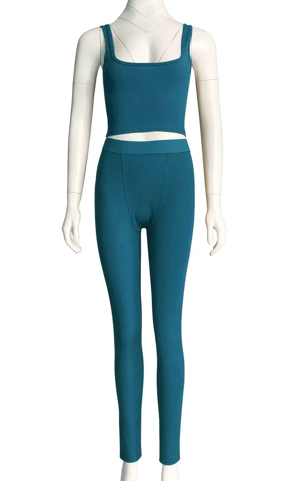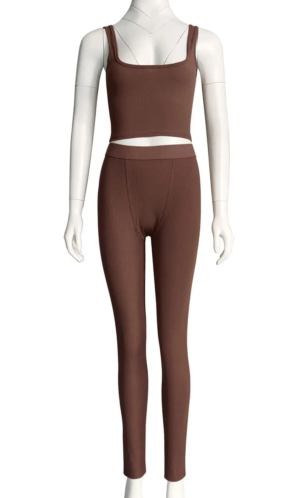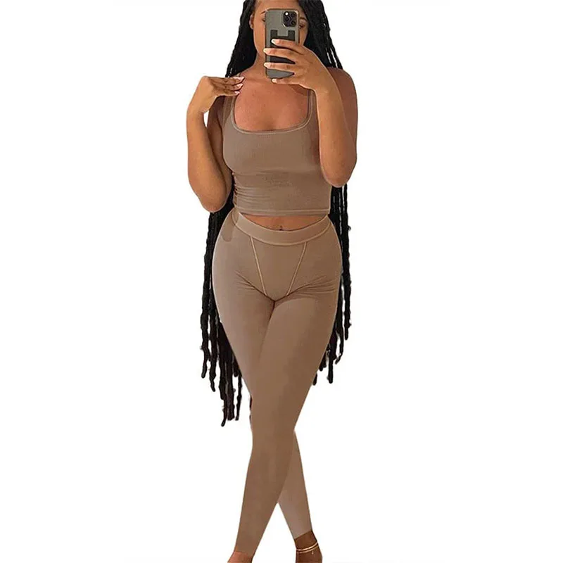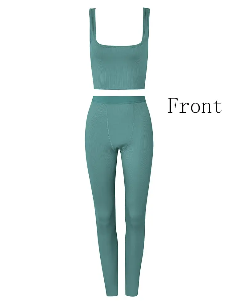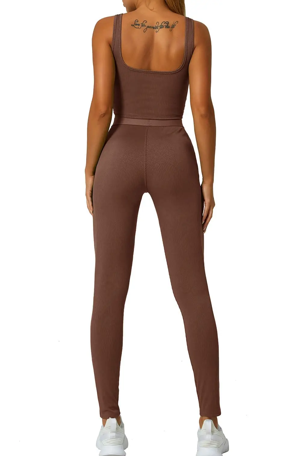 Casual Workout Sets 2 Piece Outfits For Women Ribbed Crop Tank Top High Waist Yoga Leggings Lounge Wear Tracksuit Price range: $ 19 through $ 23