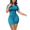Lounge Wear Ribbed Casual 2 Piece Summer Shorts Set For Somen Short Sleeve Top+Elastic outfits