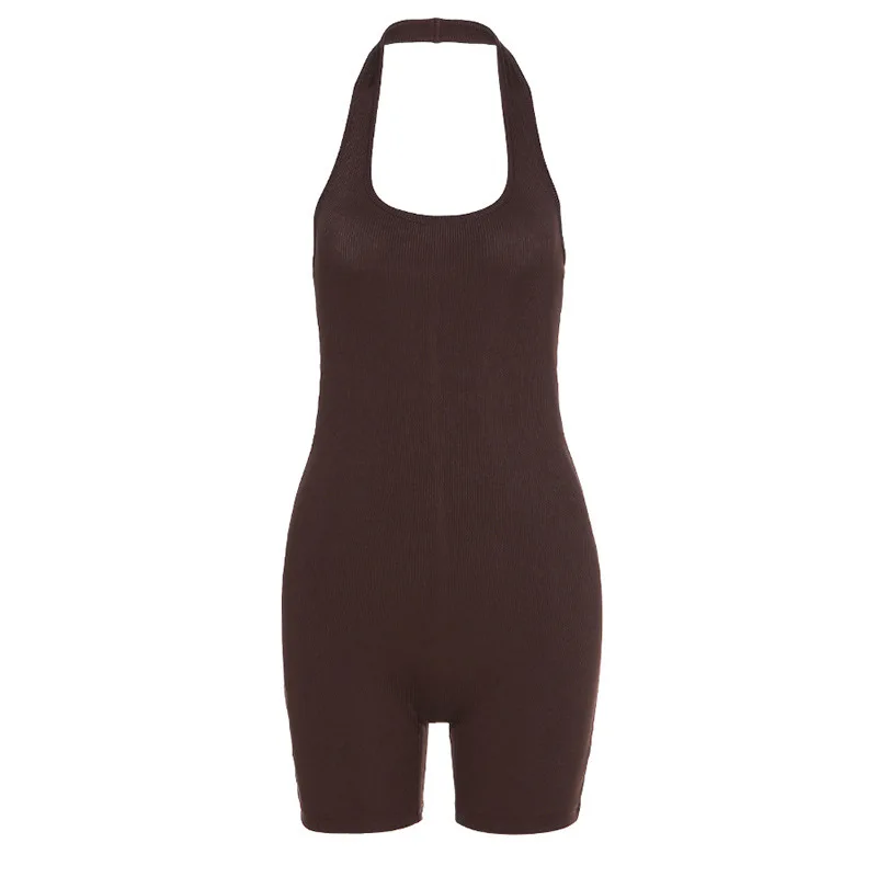 Women’s Sexy Backless Tank Top Bodycon Summer One Piece Halter Ribbed Sleeveless Bodysuit Rompers Short Jumpsuits